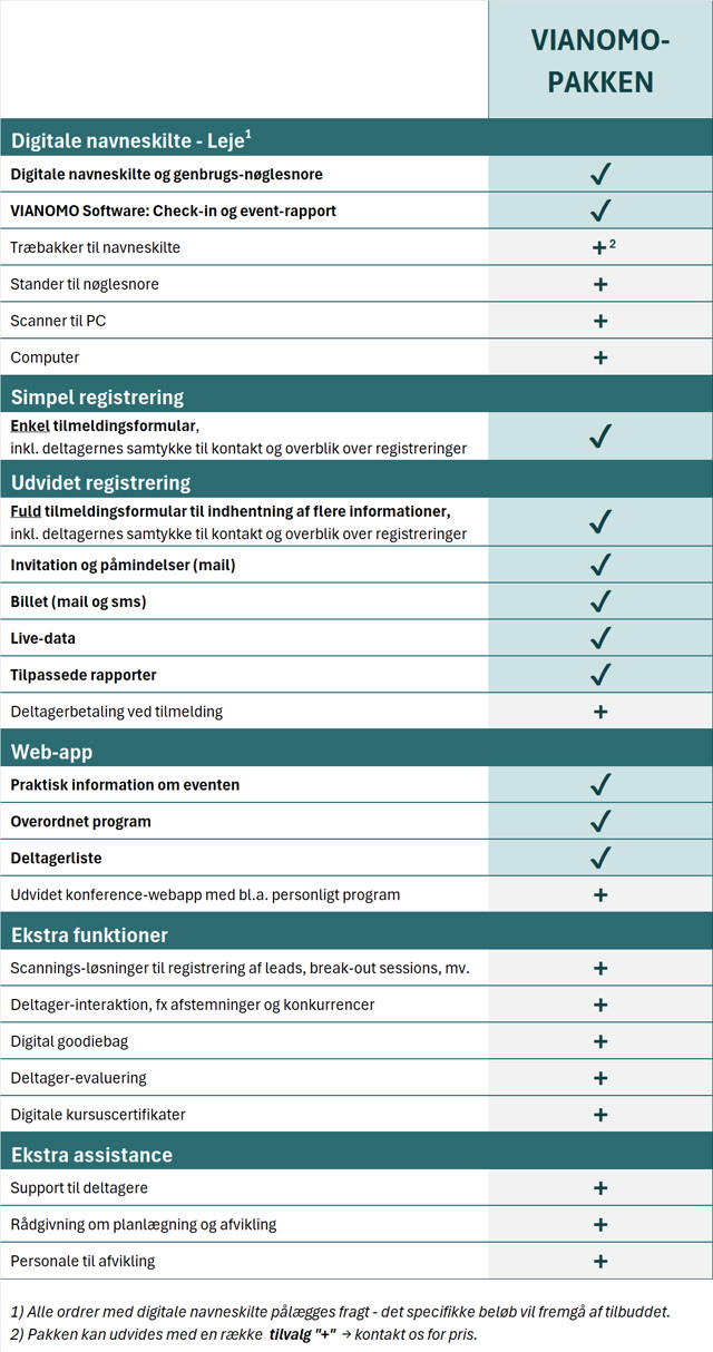 - VIANOMO Software: Check-in og event-rapport (KR. 1.595 pr. event)