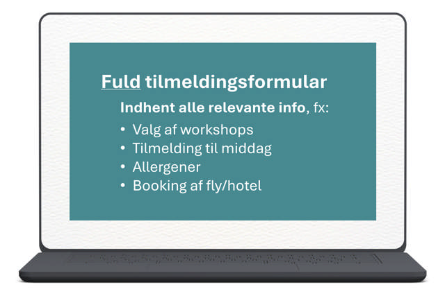 Enkel tilmeldingsformular Invitation og påmindelse (e-mail) Overblik over registrering